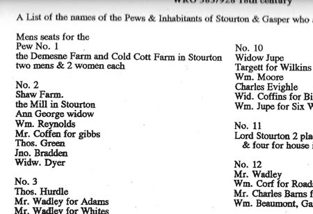 Pew allocation early 18th century. See full text